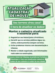 PREFEITURA DE SÃO DOMINGOS ORIENTA MORADORES A ATUALIZAREM O CADASTRO DE IMÓVEIS 29 de outubro de 2025 Leia mais »