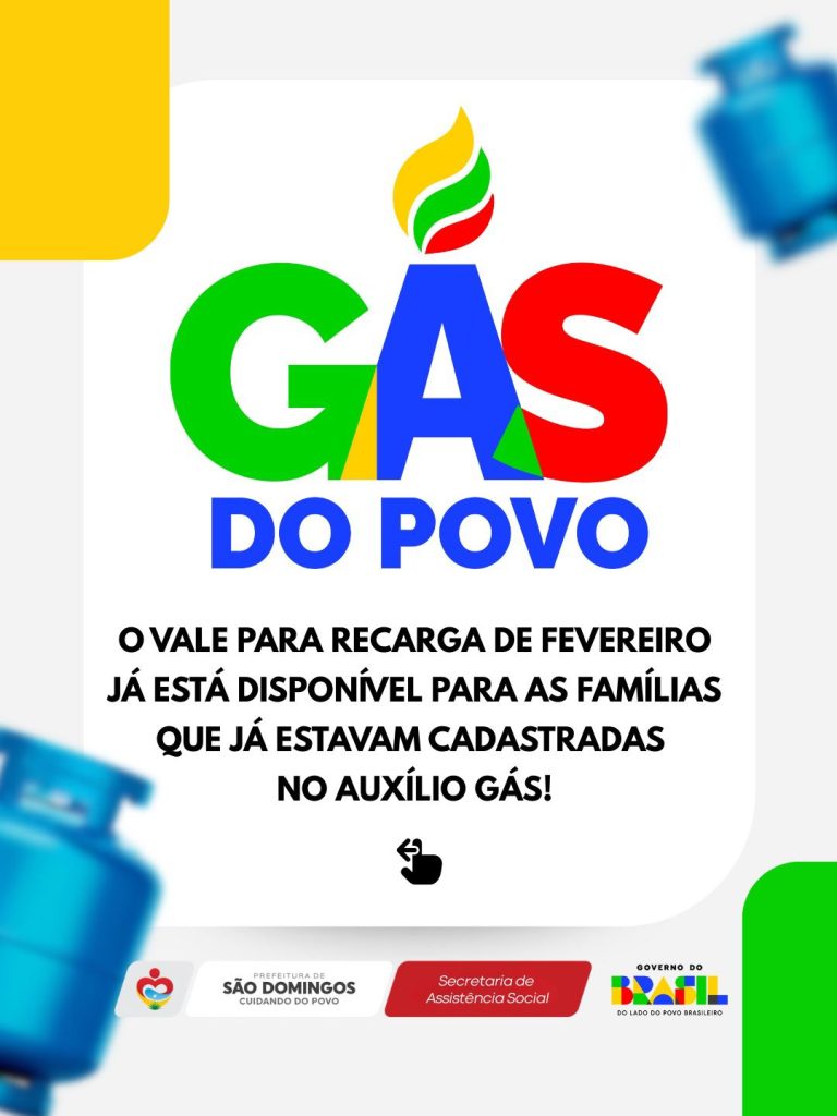 O vale do Gás do Povo referente à recarga de fevereiro já está disponível para as famílias que já estavam cadastradas no Auxílio Gás.